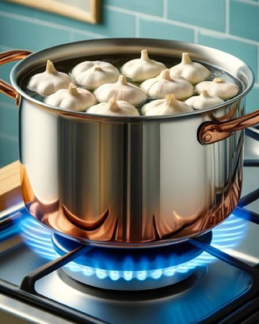 5 Knoblauchzehen in einem großen Topf kochen und dann so verwenden – meine Großmutter hat das den ganzen Sommer über gemacht