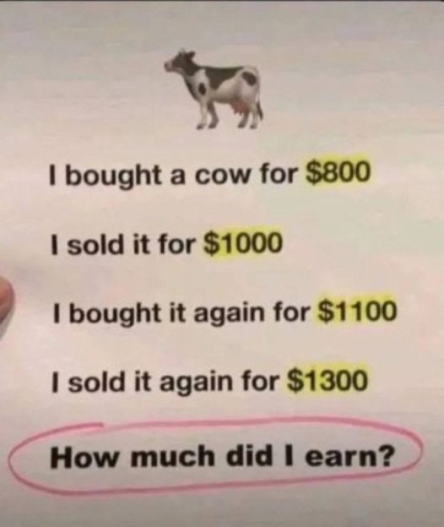 What makes this cow puzzle especially clever is how it plays with intuition. Our brains tend to focus on individual prices rather than the overall flow of money, which is why so many people arrive at different conclusions. It’s a perfect example of how simple arithmetic can become surprisingly tricky when it’s wrapped in a real-world scenario.