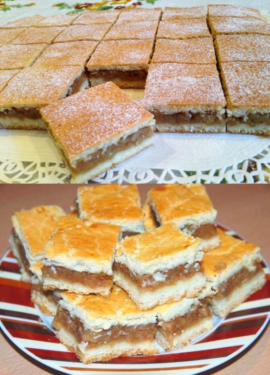 Es gibt Kuchen, die erinnern uns sofort an unsere Kindheit, an gemütliche Nachmittage bei Oma oder an den Duft, der durchs Haus zog, wenn frisch gebacken wurde. Die auf dem Bild gezeigten Apfel-Schnitten gehören genau zu diesen Klassikern. Zwischen zwei zarten Teigschichten verbirgt sich eine aromatische Apfelfüllung, die mit Zimt, Zucker und einem Hauch Zitrone verfeinert wird. Der Kuchen wird in gleichmäßige Quadrate oder Rechtecke