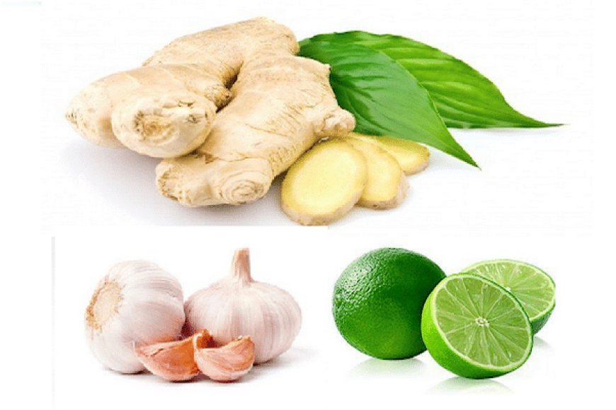 Zerdrücken Sie 5 bis 6 große Knoblauchzehen mit 7 Ingwerstangen (falls Sie einen Mixer haben), mixen Sie, bis ein Saft entsteht, und fügen Sie dann etwas Zitronensaft (afrikanisches Grün) hinzu.