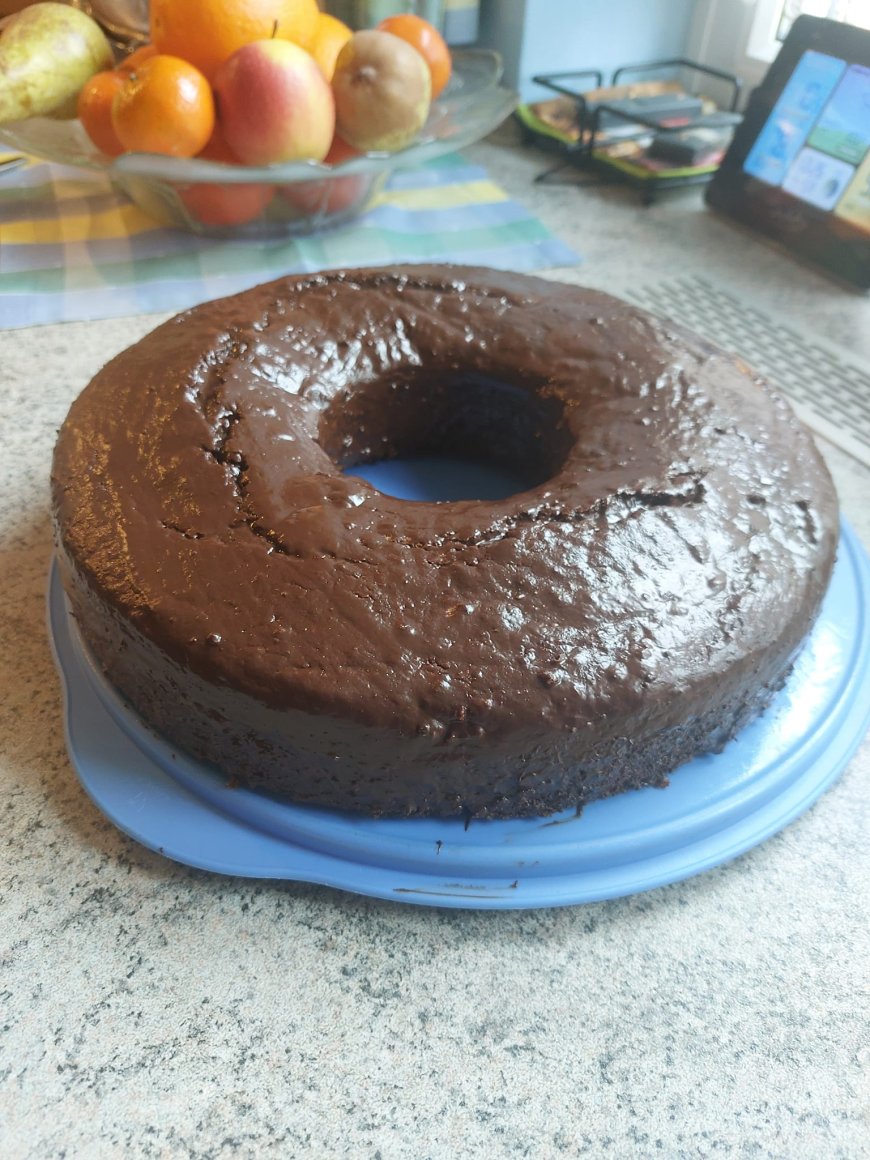 Heute habe ich einen Nuß-Schokoladen-Kuchen gebacken!