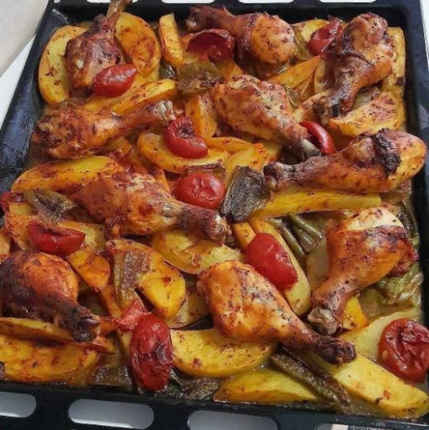 Perfekt! Hier ist ein einfaches Rezept für gebackenes Hühnchen mit Kartoffeln: