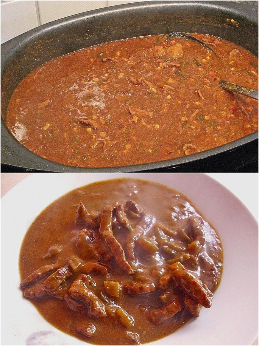 Die Rouladenstreifen wieder in den Topf geben und mit der Brühe ablöschen. (Rotwein yerine sadece et suyu kullanılacak)
