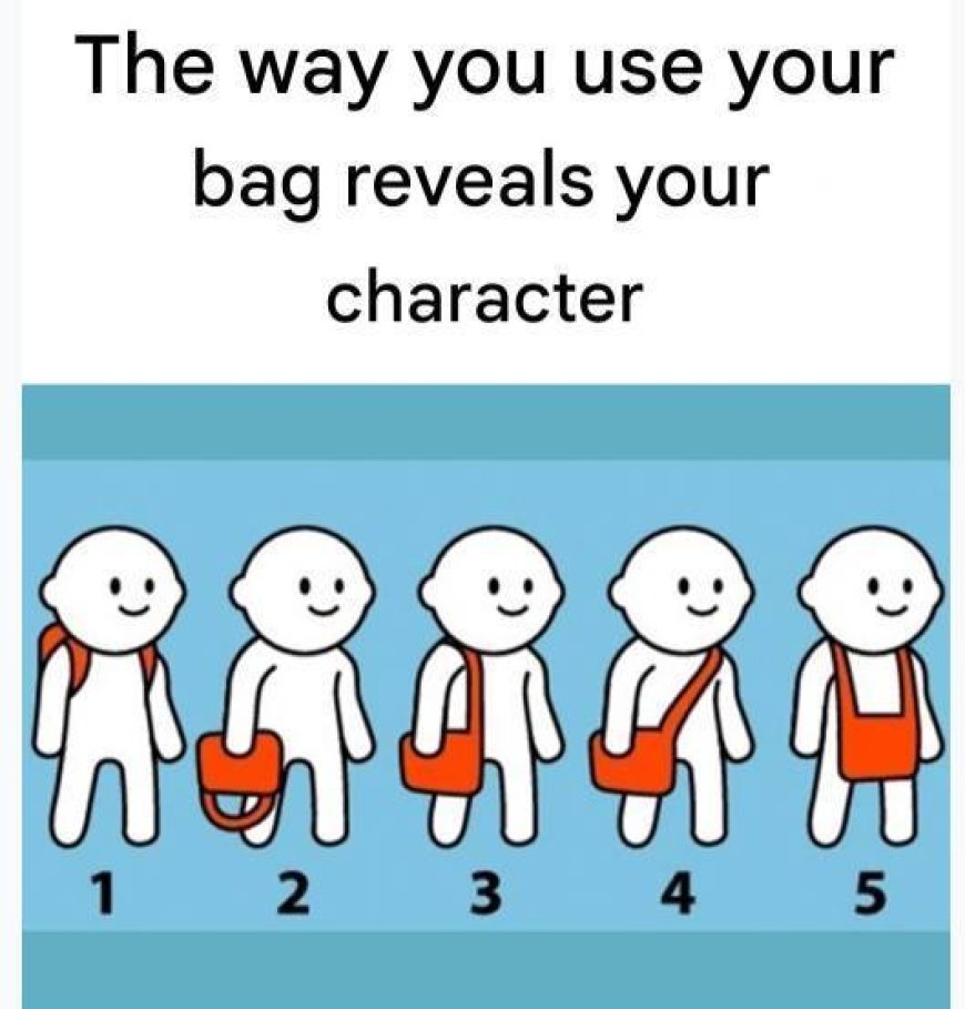 5. Carrying in the front People who tend to carry their bags in the front are quick-witted. These people are generally people with a very broad imagination. At the same time, they are considered among the people we call practical and intelligent.