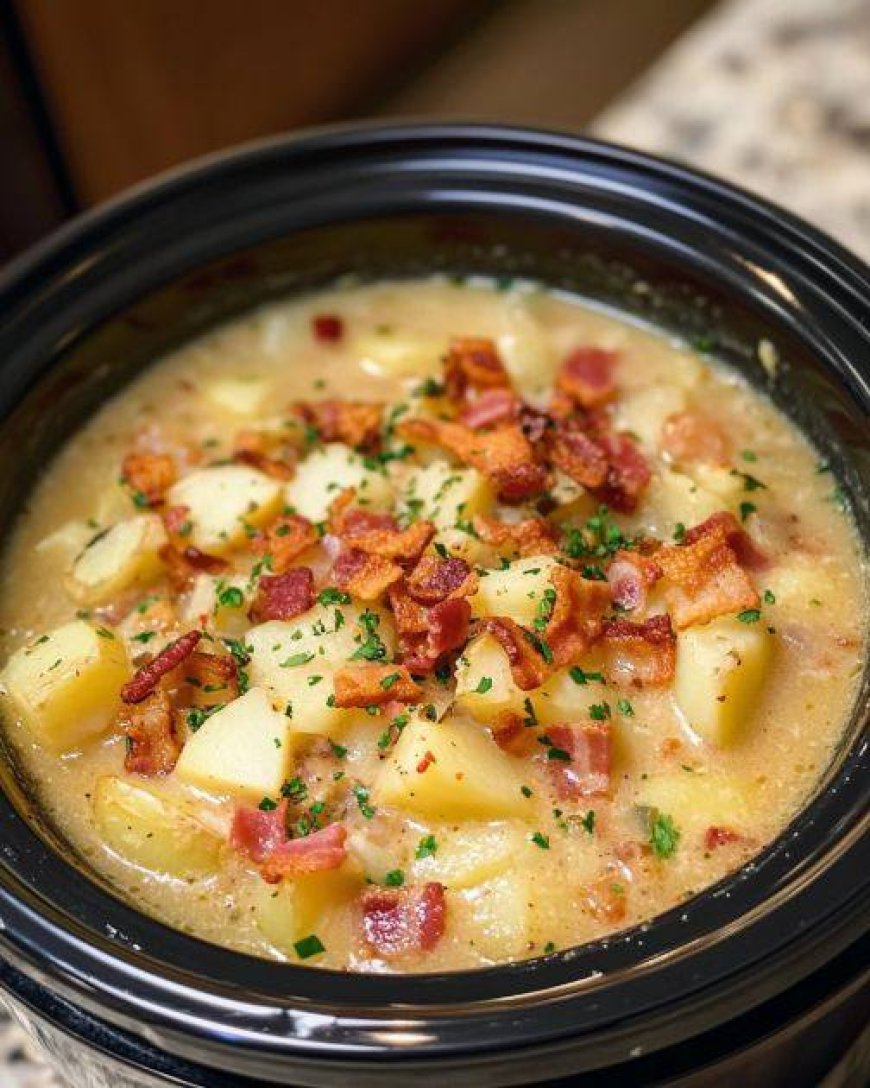 What makes this recipe especially appealing is the slow cooker method. It’s ideal for busy days when you want a comforting dinner waiting for you at home with minimal effort. As it gently simmers, the flavors deepen and blend beautifully, filling your kitchen with an inviting aroma that instantly signals comfort. Finished with classic baked potato toppings like cheese, sour cream, and crispy bacon, this soup delivers all the flavors of a loaded baked potato in spoonful form.