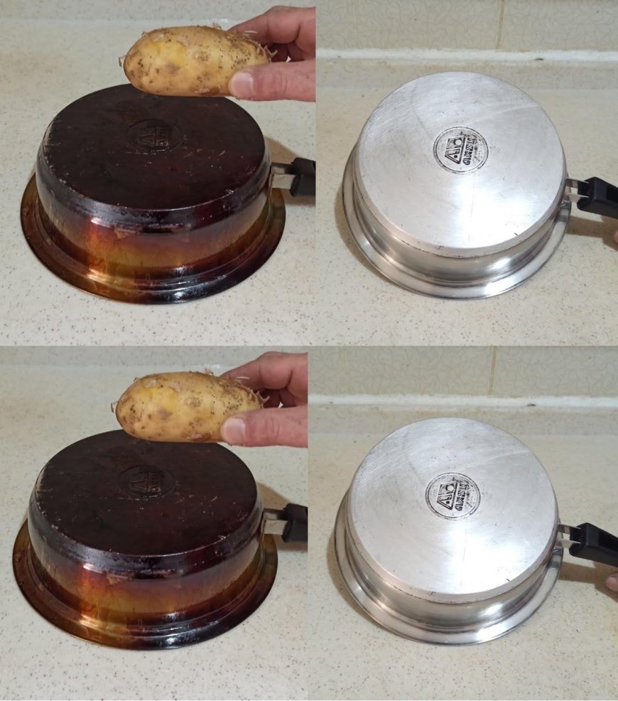 Reiben Sie in einer separaten Schüssel eine Kartoffel und fügen Sie etwas Salz, Backpulver und Natron hinzu. Mischen Sie die Zutaten gut, bis Sie Ihre Polierpaste erhalten . Entfernen Sie nun den angebrannten Topf: Nehmen Sie ihn vorsichtig aus dem kochenden Wasser . Schützen Sie Ihre Hände unbedingt mit Handschuhen oder Topflappen, um Verbrennungen zu vermeiden.