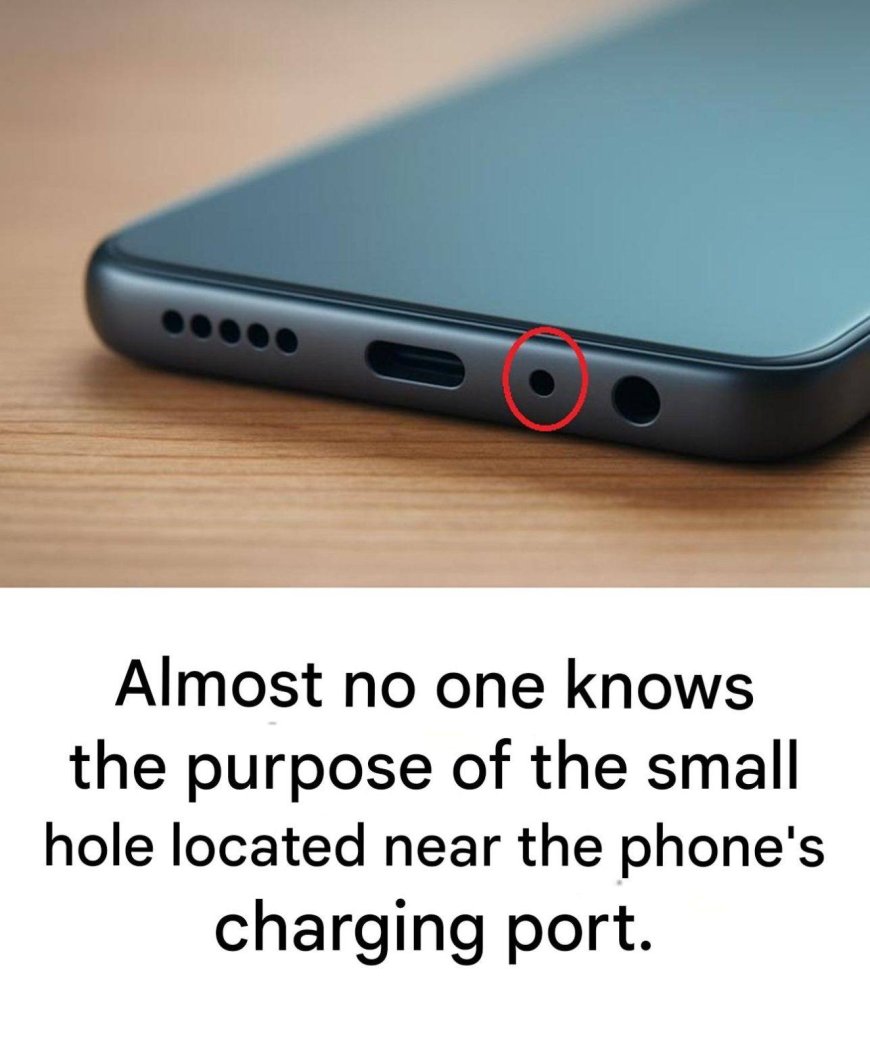 What is the purpose of the small hole next to the charging port on a smartphone — and why is it so important?